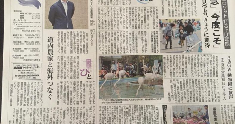 北海道新聞にてご紹介頂きました。